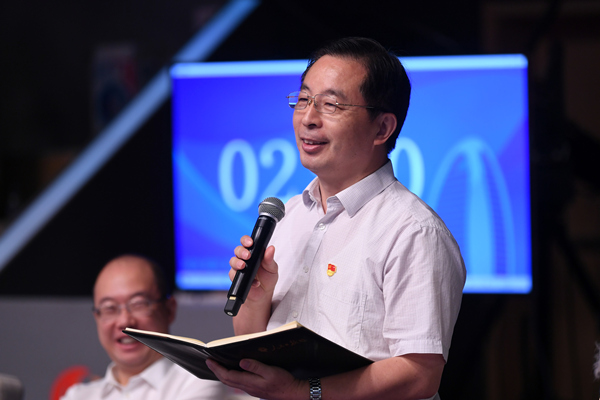 人民日?qǐng)?bào)社機(jī)關(guān)黨委常務(wù)副書(shū)記魏建周向選手提問(wèn)